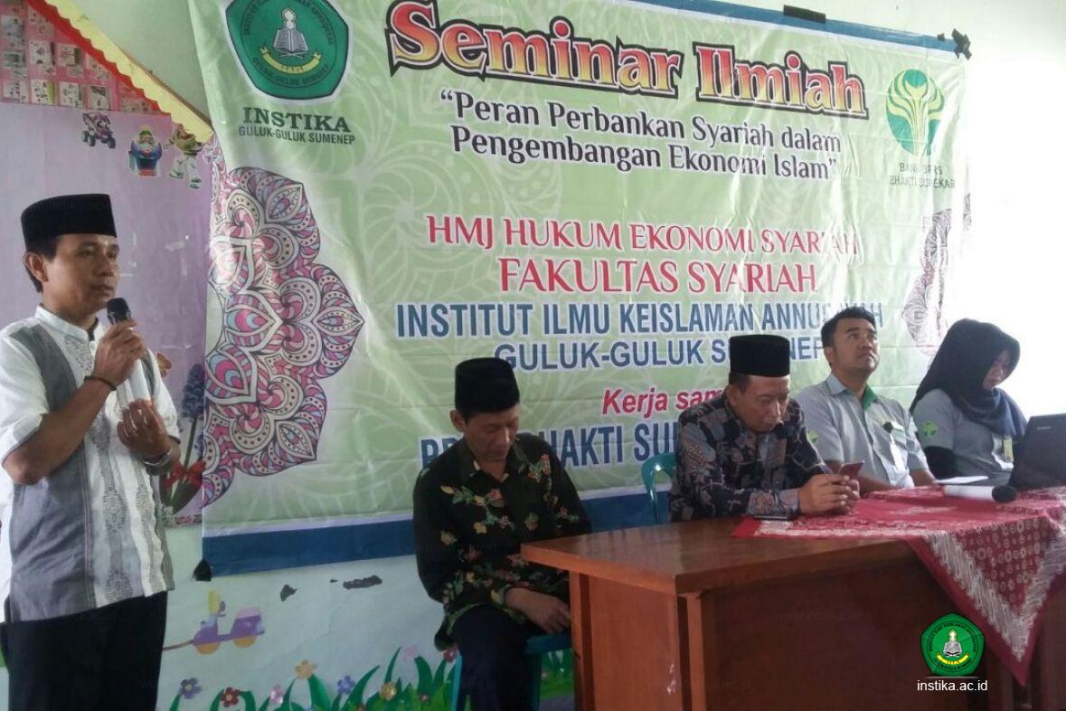 Guluk-Guluk - INSTIKA - Himpunan Mahaiswa Jurusan (HMJ) Hukum Ekonomi Syariah (HES) Fakultas Syariah bekerjasama dengan Bank Pembiayaan Rakyat Syariah (BPRS) Bhakti Sumekar Sumenep mengadakan Seminar Ilmiah bertema ‘Peran Perbankan Syari'ah dalam Pengembangan Ekonomi Islam’, Selasa (10/4/2018) di Ruang Kampus Putri.