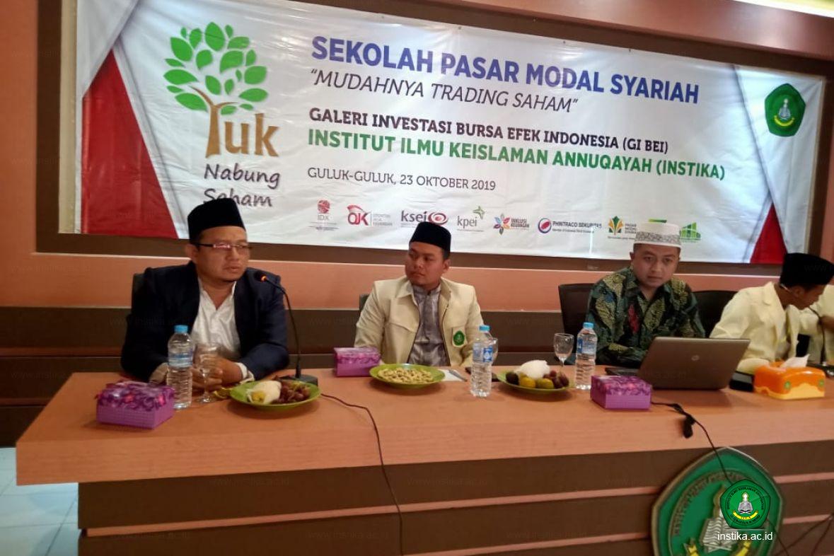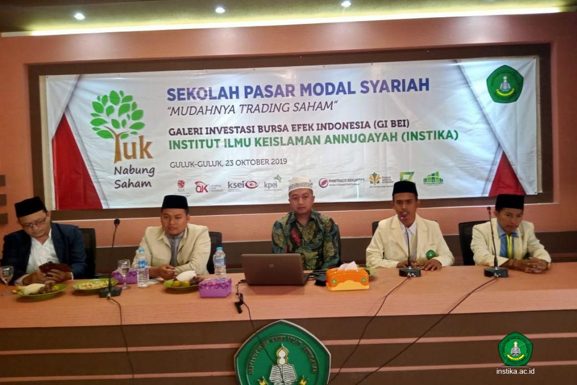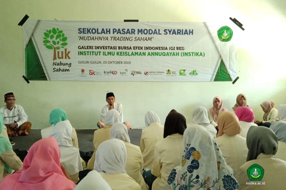Guluk-Guluk - INSTIKA - Untuk mengetahui cara melakukan trading saham dengan mudah, seluruh mahasiswa dan mahasiswi angkatan 2017 Fakultas Ekonomi dan Bisnis Islam (FEBI) Institut Ilmu Keislaman Annuqayah (INSTIKA) Guluk-Guluk Sumenep menggelar Sekolah Pasar Modal Syari'ah, Rabu (23/10/2019).