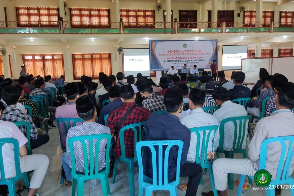 Guluk-Guluk – INSTIKA - Sebelum menerjunkan mahasiswa untuk melaksanakan program praktikum di lembaga-lembaga keuangan syariah, Fakultas Ekonomi dan Bisnis Islam (FEBI) Institut Ilmu Keislaman Annuqayah (INSTIKA) Guluk-Guluk Sumenep menggelar Pembekalan Praktikum Lembaga Keuangan Syariah dan Seminar Enterpreneurship di Aula Asy-syarqawi, Ahad (23/01/2022).