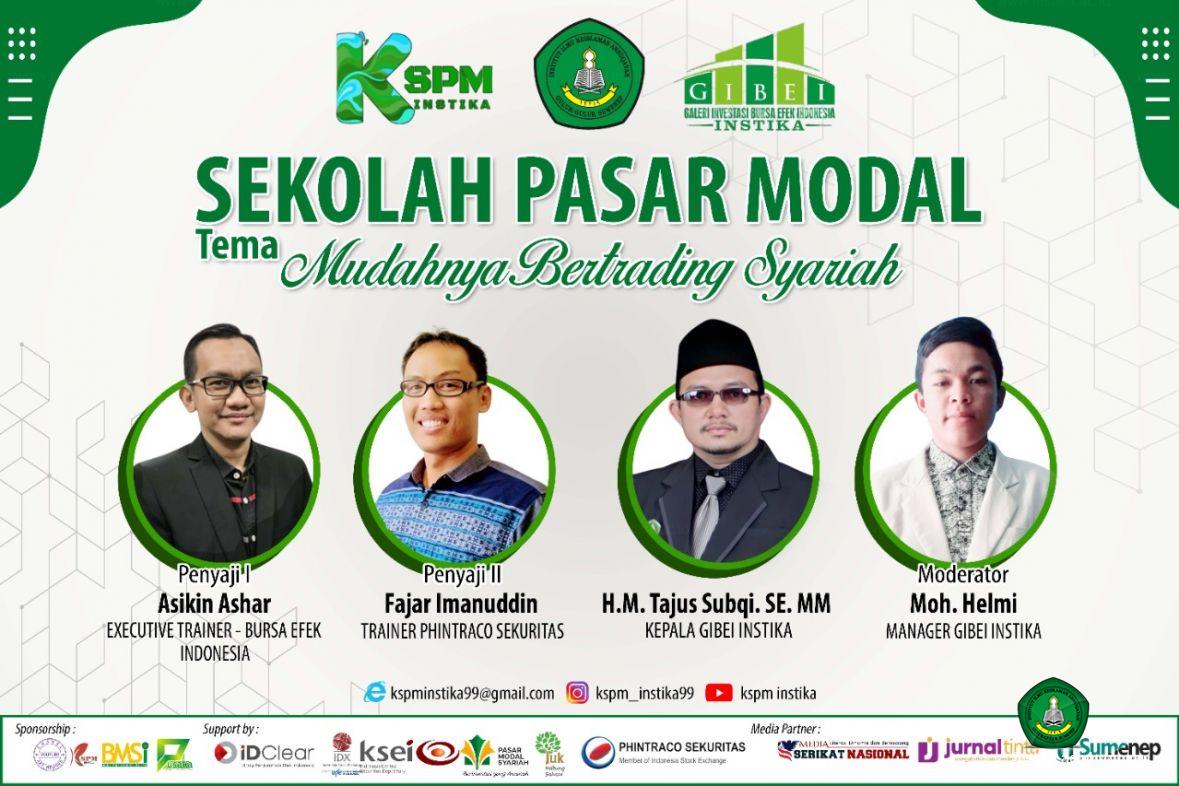 Guluk-Guluk – INSTIKA - Kelompok Studi Pasar Modal (KSPM) Galeri Investasi Bursa Efek Indonesia (GI BEI) Institut Ilmu Keislaman Annuqayah (INSTIKA) Guluk-Guluk Sumenep menggelar Sekolah Pasar Modal dengan tema: “Mudahnya Bertrading Syariah,” Rabu (15/06/2022), di Aula Asysyarqawi dan melalui Zoom Meeting.