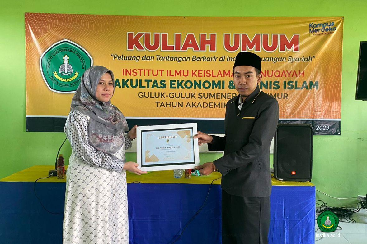 Guluk-Guluk - INSTIKA - Himpunan Mahasiswa Program Studi (HMP) Ekonomi Syariah (ES) dan Perbankan Syari’ah (PS) Fakultas Ekonomi dan Bisnis Islam (FEBI) Institut Ilmu Keislaman Annuqayah (INSTIKA) Guluk-Guluk Sumenep menggelar Kuliah Umum dengan tema “Tantangan dan Peluang Berkarir di Industri Keuangan Syariah,” Senin (18/09/2023) di Aula Mini INSTIKA.