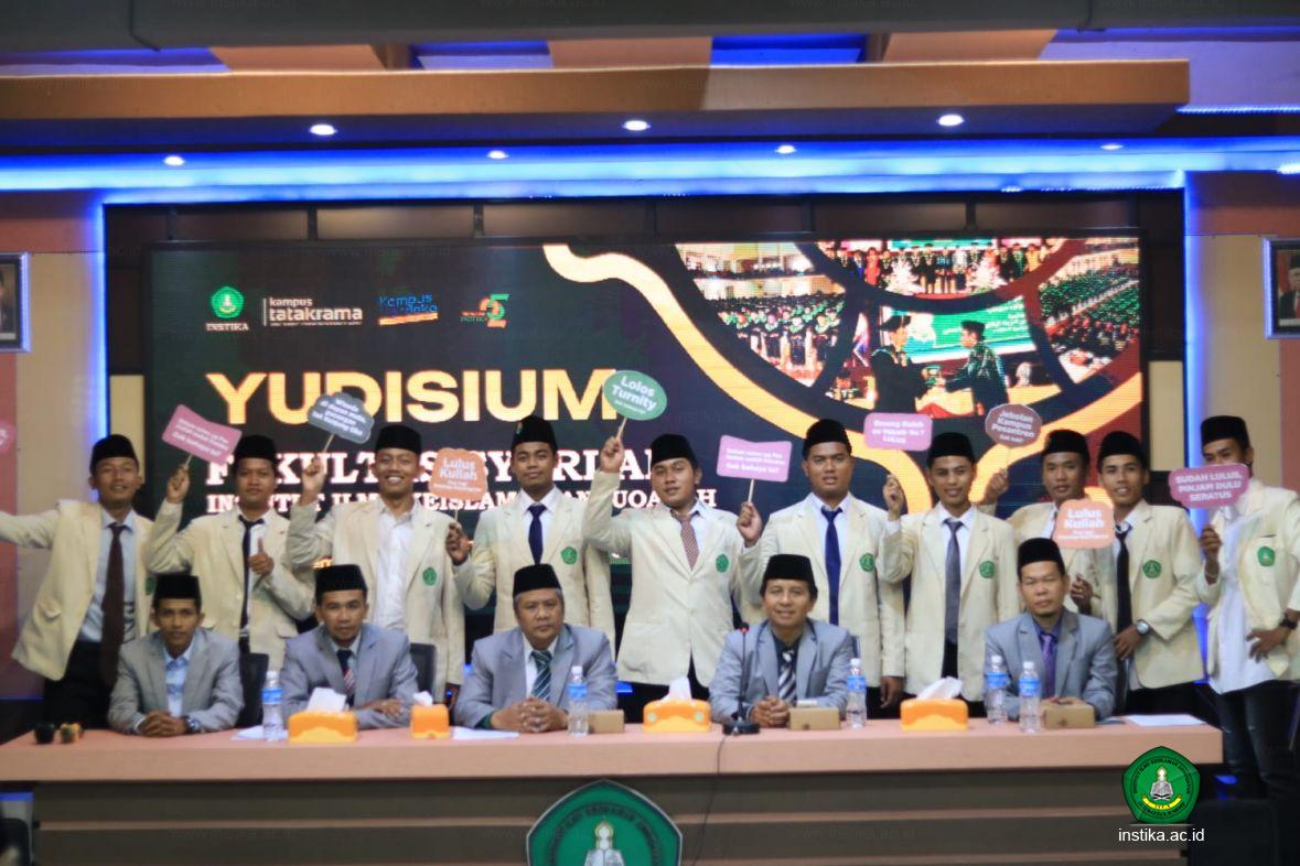 Yudisium Fakultas Syariah itu dihadiri Dekan Fakultas Syariah, Drs. KH. Abdul Halim, M.Pd.I., Wakil Dekan Moh. Jazuli, M.HI., dan Ketua Program Studi HES, Luthfi Raziq, M.HI.