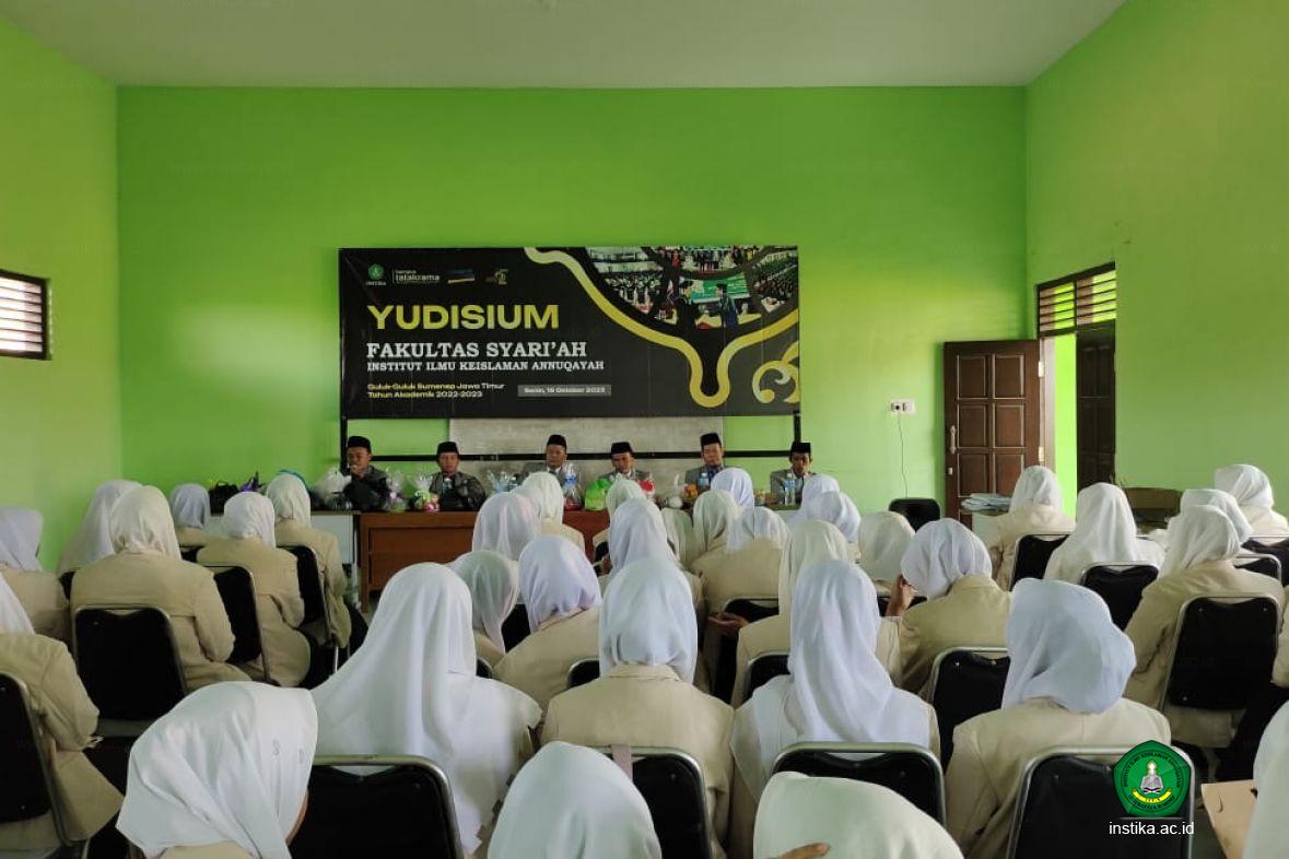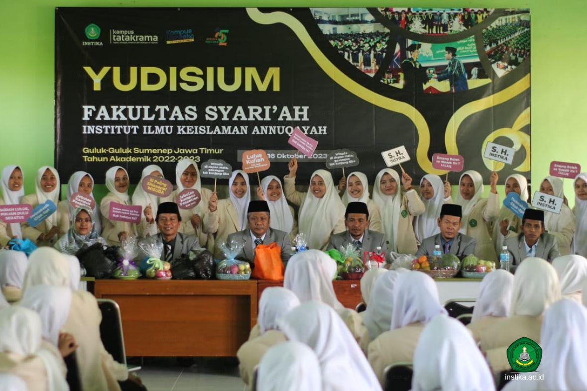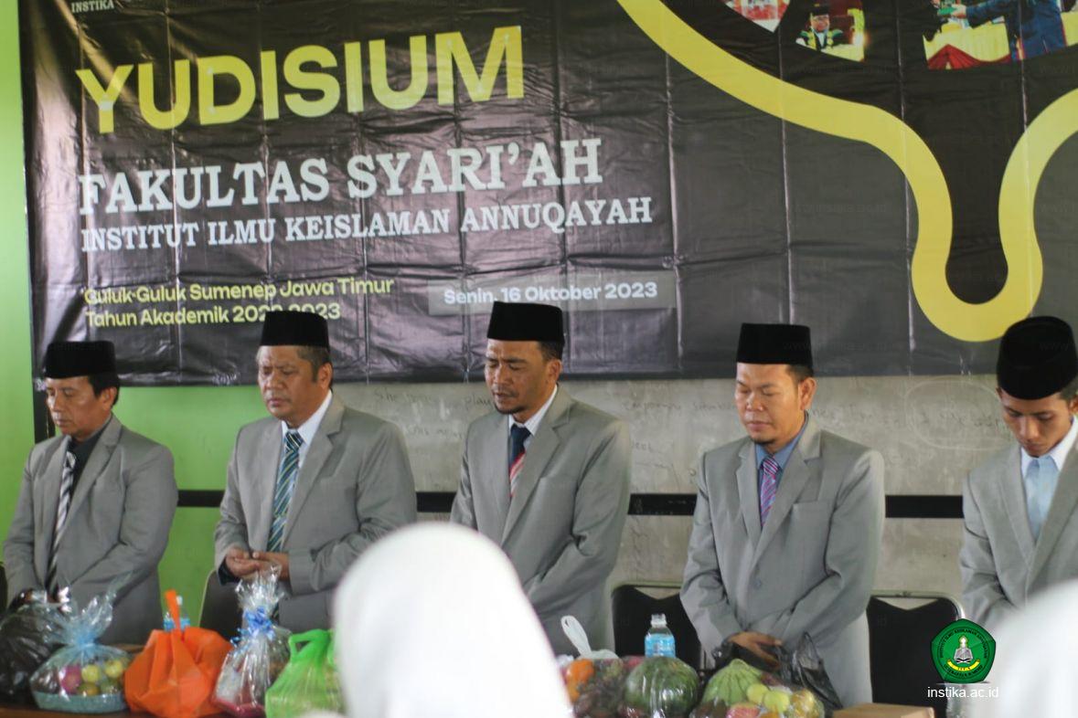 Guluk-Guluk - INSTIKA - Sebagai bentuk rasa syukur karena telah memperoleh kelulusan dan gelar sarjana, pimpinan Fakultas Syariah Institut Ilmu Keislaman Annuqayah (INSTIKA) Guluk-Guluk Sumenep mengajak peserta yudisium 2023 mengungkapkan rasa syukurnya dengan cara mengadakan Maulid Nabi di acara yudisium, Senin (16/10/2023).